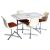 Oskar Winkler - Centa Europa - A West German 1960's retro vintage kitchenette / bistro dining suite comprising of a Formica topped table having a kitsch design to top raised on chromed splayed legs with central stretcher. Along with a set of four polypropylene chairs having crimson upholstered seat pads, all being raised on chrome supports and a four point star base. Moulding marks for maker to base of plastic seat. Measures; 73cm x 120cm x 67cm.