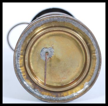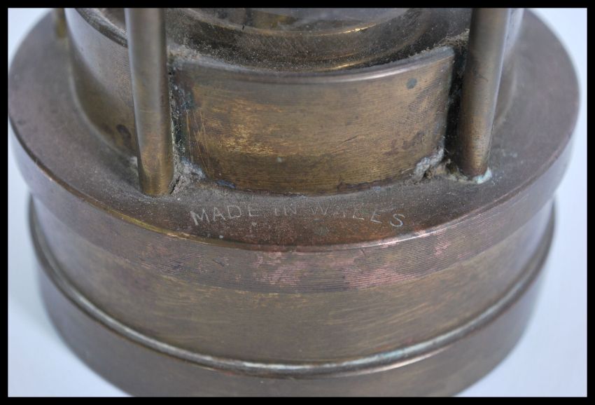 E. Thomas & Williams Ltd copper and brass miners lamp with carry loop to the top. Measures 24cm-high 8.5cm-diameter.
