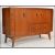 A retro vintage 20th Century teak wood Danish inspired sideboard, two short cupboard doors over a single drawer flanked to the left by a long cupboard door, raised on square supports. Measures: 85cm high x 122cm wide x 47cm deep.