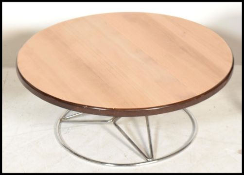 Retro 20th Century furniture to include a dressing table Tulip stool in the manner of Arkana, a tubular chrome based coffee table and another footstool. Measures: 29cm high x 70cm wide.