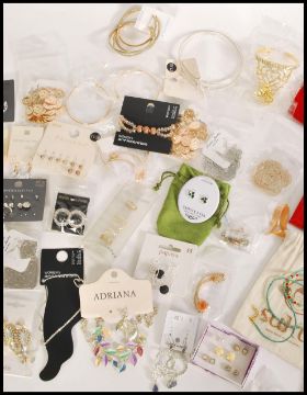 A collection of unused costume dress jewellery to include necklaces, bangles, bracelets, rings, earrings etc, many still carded or with original packaging.