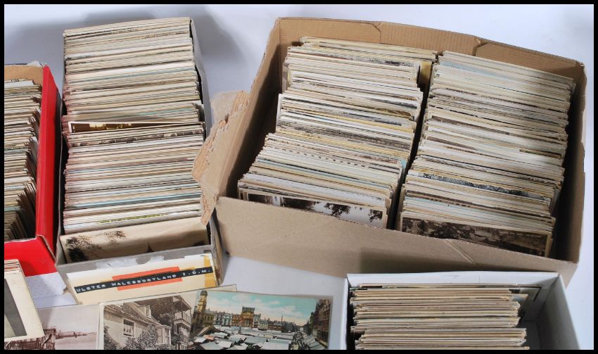 POSTCARDS Hoard of antique/vintage British topographical views / scenes in shoe boxes. 4,000+ cards. Most appear from the "Golden Age".