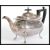 An early 20th century Walker and Hall silver plated tea set with pad feet and shell form shoulders to include a teapot with shaped bakelite handle and finial, a sugar bowl with two shaped handles and a creamer jug.