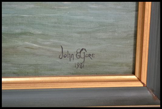 A late 20th century naval oil painting entitled 'the Capture of Portobello' signed to the corner John & Gore 1981, depicting the British navy battling Spanish forces in Portobello, Panama. Measures 84 x 85cms.