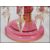A 19th century Victorian garniture of cranberry glass lustres, to include two matching with with crenelated rims, having six prismatic cut glass crystal drops and hand painted floral gilt overlay to the tops and stems, raised on round bases with baluster shaped stems. Also with a cranberry glass lustre having a scalloped rim, and faceted cut glass drops. Measures 27cm-high 13cm-diameter.