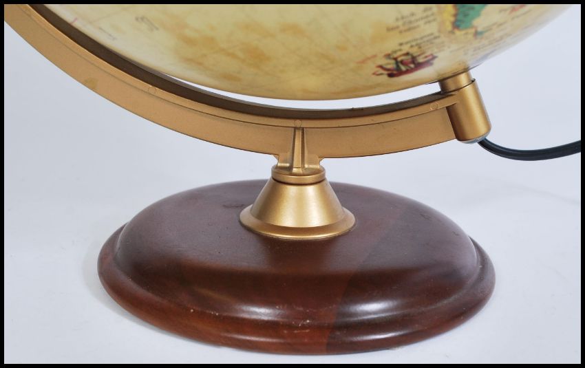 A vintage retro 20th century desk top terrestrial world globe raised on a circular base. Measures 28cm-high 17cm-wide.