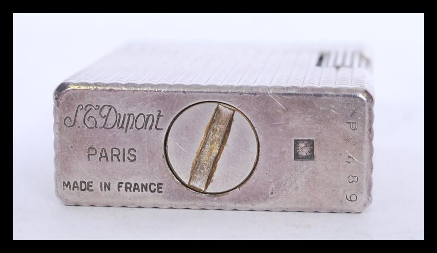 A vintage 20th century DuPont lighter bp2489 having a square cut design complete in original box