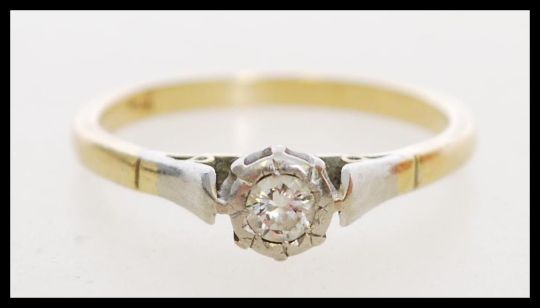An 18ct gold diamond solitaire ring. Diamond approx 15pts.  Marked 750 tests 18ct gold. Weight 2.6g. Size O.5.