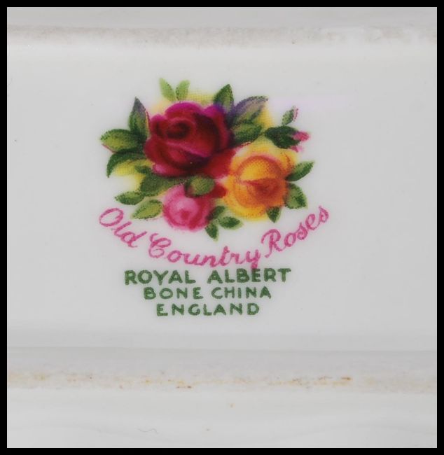 An extensive part coffee / dinner service of Royal Albert bone China in the Country Roses, to include coffee pot, cups and saucers, lidded tureens, dinner plates, various sized sized plates, wall clock etc. Wall clock measures 27cm-diameter.