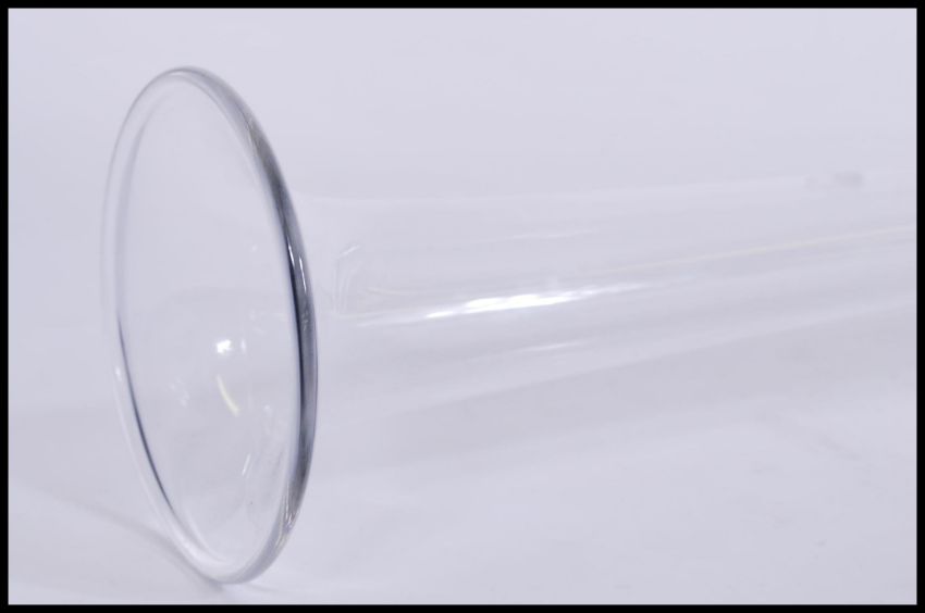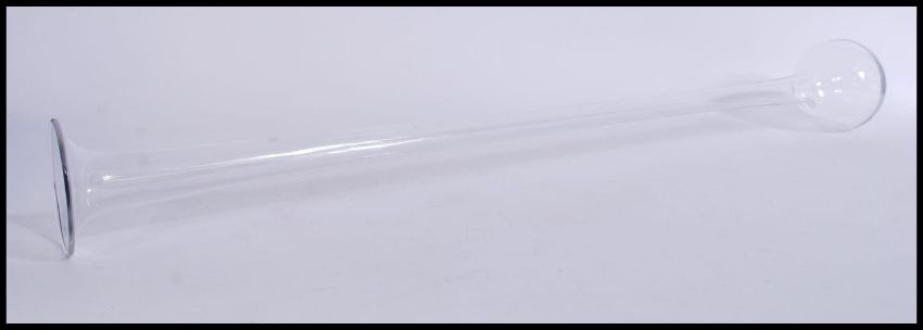 A Dartington glass lead crystal glass yard of ale of typical form with bulbous bowl surmounted with a flared rim to the top. Measures 95-long.