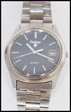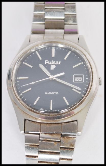 A vintage 20th Century Seawatch Super Waterproof 23 Jewel Anti magnetic gents wrist watch together with another gents watch by Pulsar. Largest measures 3.5 cm diameter (face).