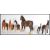 A group of ceramic horse figurines including a large shire horse ornament with smaller brown horse ornaments, three being stamped Beswick to the bellies. Shire horse measures 22 cm high and 22 cm wide.