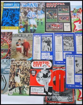 A group of vintage retro 20th century football programs dating from the 1960's to 1970's to include mostly Bristol Rovers and Bristol City along with a child's 1950's Football scrapbook. Biggest measures 24cm-high 18cm-wide.
