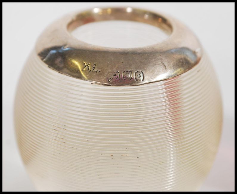 Two Victorian / Edwardian hallmarked silver rim ovoid glass match strikes, one of clear glass and the other in cranberry glass. Biggest measures 4cm-high 4cm-wide.