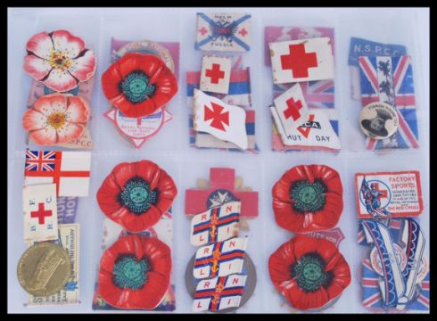 A collection of early 20th Century circa WWII lapel / pin badges to include Church Army War Fund, RNLI, Red Cross, British Sailors Society, For Soldiers Children, Gloucestershire police The Orphans Day, Haig's Fund ( Poppy ) etc. Biggest measures 18cm-high 25cm-wide.