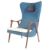 A retro vintage mid-century Danish high backed easy / lounge / wing back chair / armchair. The chair having a tall shaped wing back armchair in blue velour upholstery having a teak frame and shaped armrests, the design bearing similarities with IB Kofod Larsen. Measures 103cm x 67cm x 70cm.