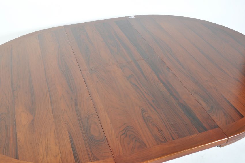 Troeds - A 20th Century retro vintage Swedish round extending pedestal dining table having four point splayed base and a matching colour fold out leaf, bolts not present. Applied paper label to underside. Measures 72cm x 115cm diameter (extends to 155cm).