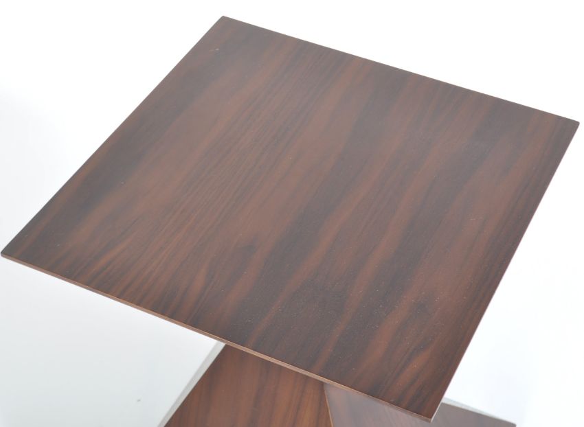 A contemporary solid walnut pyramid side / coffee / lamp table. The table being in the form of two pyramid type shapes balancing one on top of another. Measures 51cm x 40cm x 40cm.