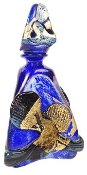 Jean-Claude Novaro - Flacon Compression 1994 - A stunning 20th Century oversized scent bottle with stopper in a pyramid shape with texted compressed glass and gold leaf all in a blue colourway with white speckling to each face with the similar shaped stopper. Engraved notation to pontil JC. Navaro 1994 and signature. Measure 27cm tall.
