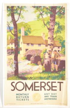 An original GWR Railways Travel Poster for Somerset by John Bee (1895 - ) . This view is of Allerford Bridge in the national park of Exmoor. This original poster printed by J Weiner Ltd. Condition A.  Measures  101cms x 63cms approx