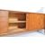 A superb Scandinavian influenced 1960's retro vintage teak wood sideboard credenza. The unit comprising of twin sliding doors to centre relieving a shelved storage cupboard flanked by a drop down cocktail cabinet and the other side having a bank of four drawers with recessed handles. The top having a lipped gallery back and all raised on round tapering legs with fitted frieze. Measures 80cm x 231cm x 45cm.