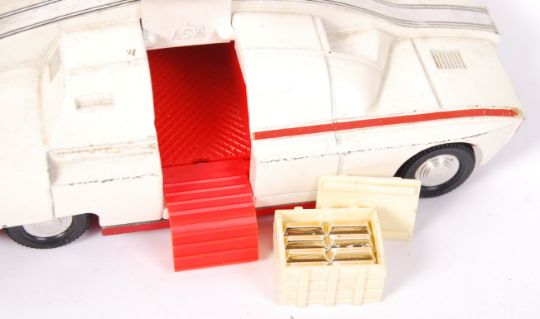 A vintage Dinky Toys made Captain Scarlet & The Mysterons diecast model No. 105 ' Maximum Security Vehicle '. Model good to good+, some paint chips and missing aerial, but Radio Active Isotopes crate still present. Within the original box.