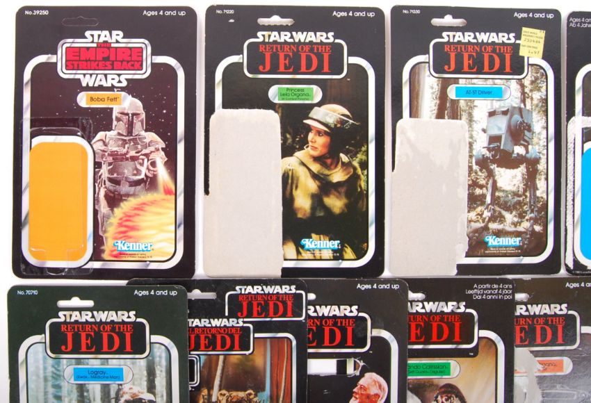 A collection of 19x assorted vintage Kenner / Palitoy Star Wars action figure backing cards / card backs. Some rare figure cards included. Comprising of: Emperor's Royal Guard, Han Solo (In Trench Coat), Leia Organa (Bespin Gown), Last 17 Tri-Logo Paploo,Last 17 Amanaman, Obi Wan Kenobi, 8D8, Weequay, Imperial Stormtrooper, Darth Vader, Princess Leia Organa (Boosch Disguise), Lando Calrissian (Skiff Guard), Logray, AT-ST Driver, Leia Organa (Combat Poncho),8D8 Tri-Logo, Walrus Man, Boba Fett (unpunched 31 back) and Power Droid. Various conditions. Good assortment.