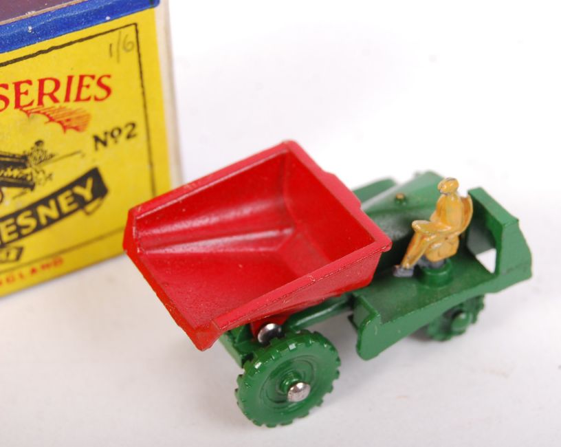 An original vintage Matchbox Moko Lesney made diecast model No. 2 ' Muir Hill Site Dumper '. Green body with green painted metal wheels. Model appears mint to mint+ (the best we've seen), within a near mint original box.