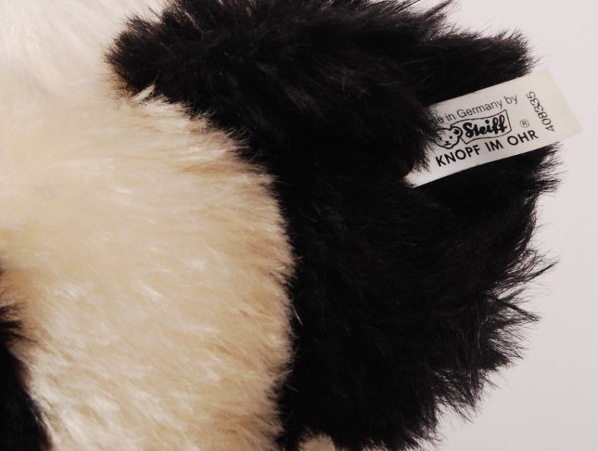 A Steiff ' Replica 1995 ' Panda Bear teddy bear ' 50 '. 1951 - Black and white mohair, with inset glass eyes and open mouth. Only ever displayed, appears mint. Chest and ear tags present, with certificate. Measures approx 50cm tall. With box.