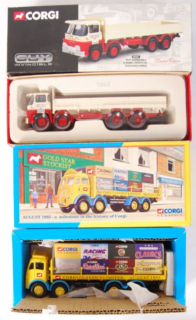 A good collection of assorted original Corgi diecast scale model vehicles - all hauliers - from various series, to include; ERF 8 Wheel Rigid 09802 , Albion Caledonian Platform Lorry And Sacks 26201 , Albion Reiver Platform Lorry 26101 , Guy Invincible 29401 Limited 3194/4000 and a Guy Warrior 29201 Limited 50/5000 . All appear mint in box with certificates. Great collection.