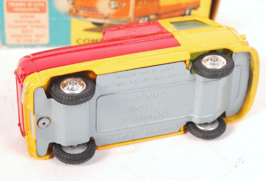An original vintage Corgi Toys made boxed diecast model No. 465 ' Commer Pick-Up Truck '. Yellow, with red rear section. Model very good to near mint, within a good+ original box.