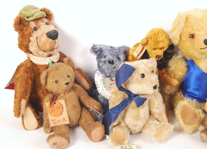 A collection of 10x assorted Artist Bears / Collector's teddy bears. Various makes and designs. All as new, many still retaining their tags. Comprising of the following makers: Geraldine's Of Edinburgh, Robin Rive, Gilda, Alison Godolphin, Cooperstown Bears, Colour Box Miniatures and others. Good collection. Tallest approx; 43cm.