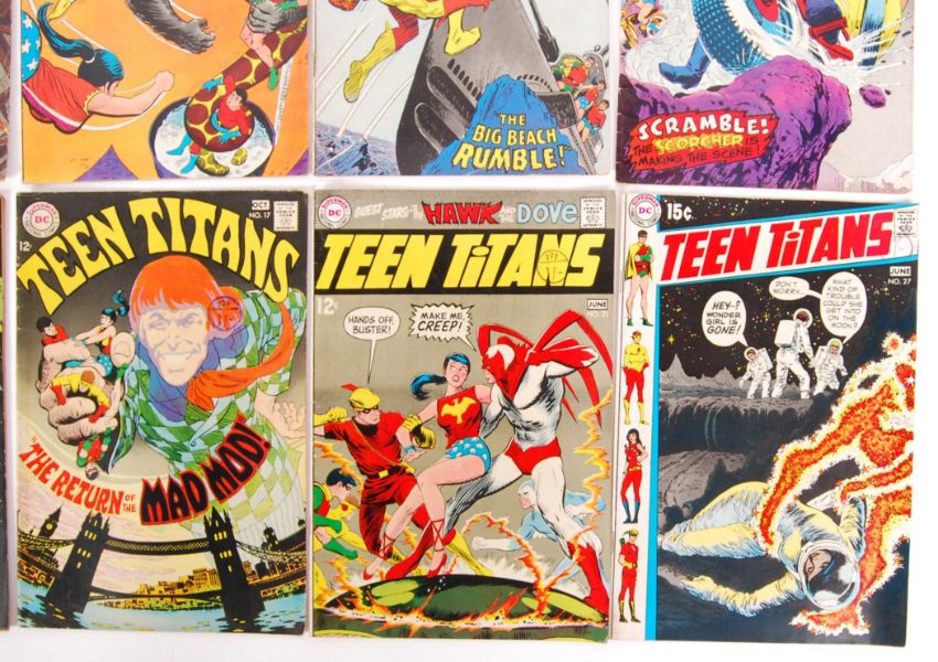 A collection of 10x original vintage 1960's DC Comics ' Teen Titans ' comic books. Comprising of issues: #4, #5, #6, #9, #10, #11, #12,  #17, #21 and #27. Some small runs present. All with wonderful artwork. Largely very good - no pen marks or tears within.