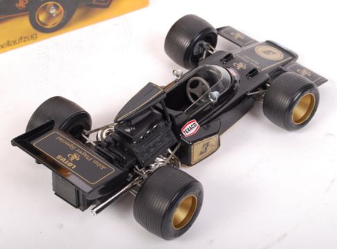 An original vintage Schuco made clockwork ' John Player Special Lotus Ford Formel 1 '. Ex-shop stock, appears as new, within its original box. With all inner packing present, with key and spanner still present within their original paper bag. Rare in this condition.