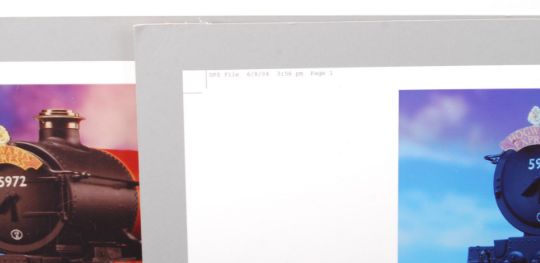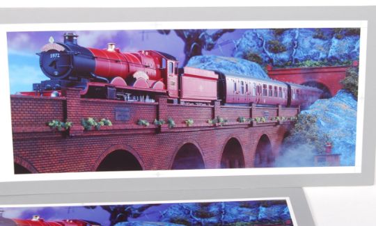A set of 5x rare Hornby 00 gauge railway trainset catalogue test prints for the 5972 ' Hogwarts Express ' locomotive from the Harry Potter movies. Each test print is laid to a printers board and measures approx; 27cm x 64cm. All images are slightly different, either in cropping, or colour. These pre-production prototype test copies would've likely been for the 2004 Hornby catalogue. Interesting items.