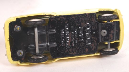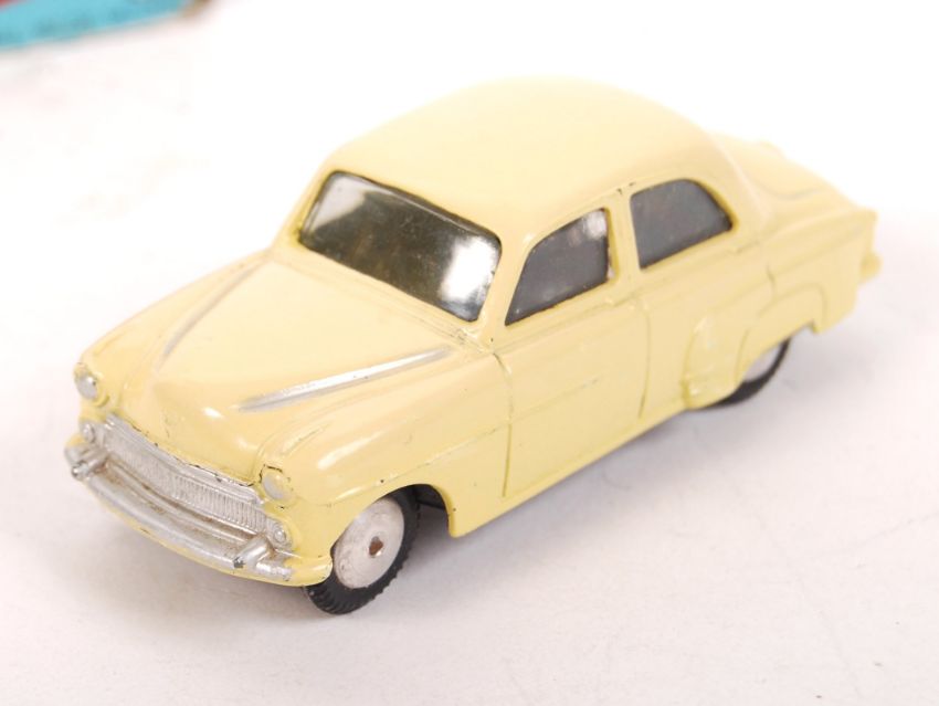An original vintage Corgi Toys made boxed diecast model No. 203 ' Vauxhall Velox Saloon '. Yellow, with silver streaks. Model very good+ to near mint, within the original box (box tatty).