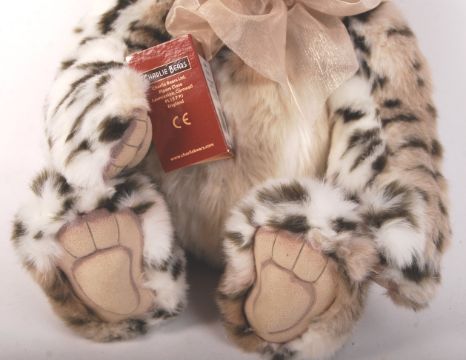 A Charlie Bears made exclusive teddy bear CB151555 ' Giselle' designed by Isabelle Lee. Black, brown and white mohair, with padded paws. As new, with tags. Measures approx; 40cm tall.