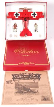 An original W.Britain / Britains World War I scale metal model plane and soldier set No. 00158 ' Fokker Dr 1 With Manfred & Lothair '. Appears mint in the original box. Superbly detailed diecast / model set.
