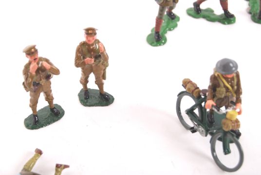 A good collection of 10x assorted W.Britain / Britains made World War I and World War II metal diorama model figures / soldiers to include; WWII German Infantry, WWI British Infantry and WWII British Infantry. Figures measure approx 6cm tall.