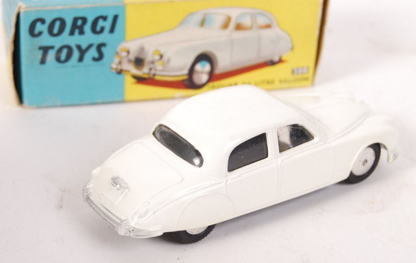 An original vintage Corgi Toys made boxed diecast model No. 208 ' Jaguar 2.4 Litre Saloon '. White. Incredible very near mint original condition (1-2 very small paint chips). Within a good+ original box. Wonderful model.