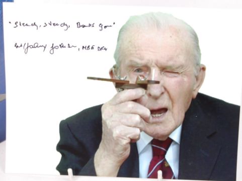 A Corgi ' The Aviation Archive ' Special Edition 1:144 scale precision diecast model Avro Lancaster. Special Edition ' Operation Chastise ' ( Dambusters ) model of Guy Gibson's Avro Lancaster AJ-G. Signed by last surviving British Dambuster George Johnny Johnson exclusively for this event. The model being signed on the wing, and also the exterior box. Highly detailed model.