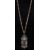 A 1950s pendant necklace strung with a large pendant in the form of a Chinese temple and set with amber glass gems. Measures 30 inches plus a 3 inch pendant.