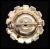A vintage guilloche enamel brooch pin and clip on earring set having hand painted enamel roses on a white guilloche enamel background surrounded by a halo of rhinestones. Brooch measures approx 2cms.