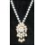 A vintage signed Trifari gold tone and white glass bead flower pendant necklace. Chain measures 18 inches, pendant measures approx 3 inches.