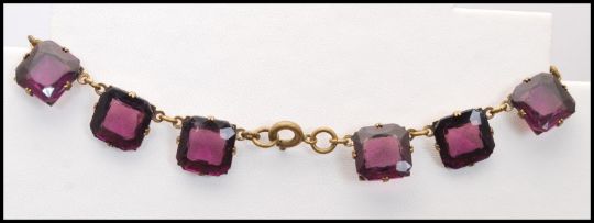 A 1920s Czech riviere necklace strung with amethyst square cut glass crystals. Measures approx 15 inches.