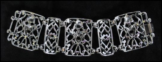 A 1950s signed Selro Selini silver-tone skeleton bracelet. Signed Selini. Measures 7 inches.