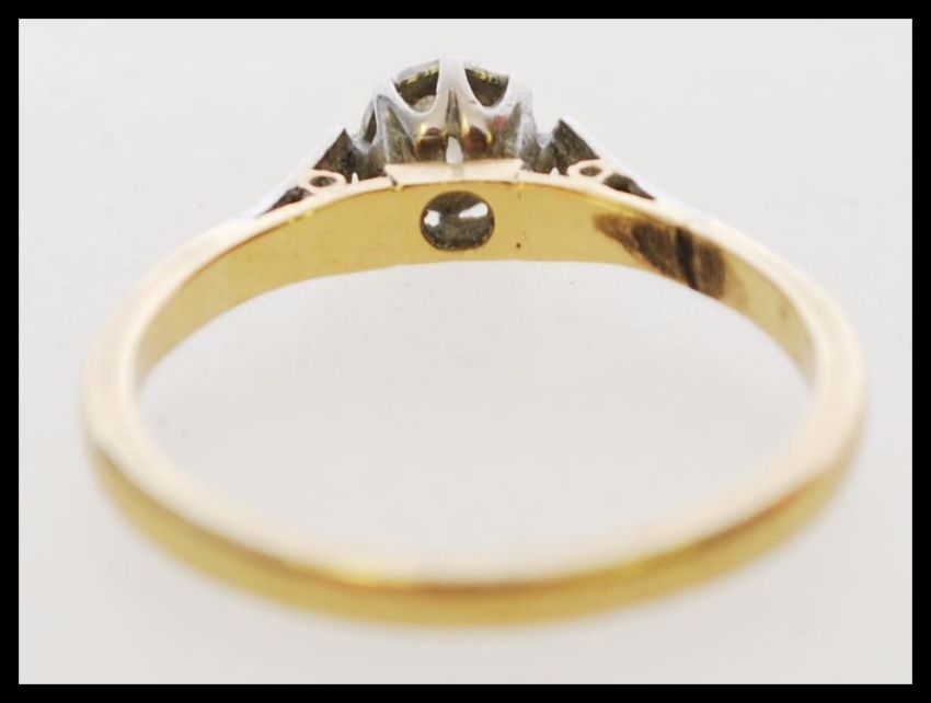 An 18ct gold diamond solitaire ring. Diamond approx 15pts.  Marked 750 tests 18ct gold. Weight 2.6g. Size O.5.