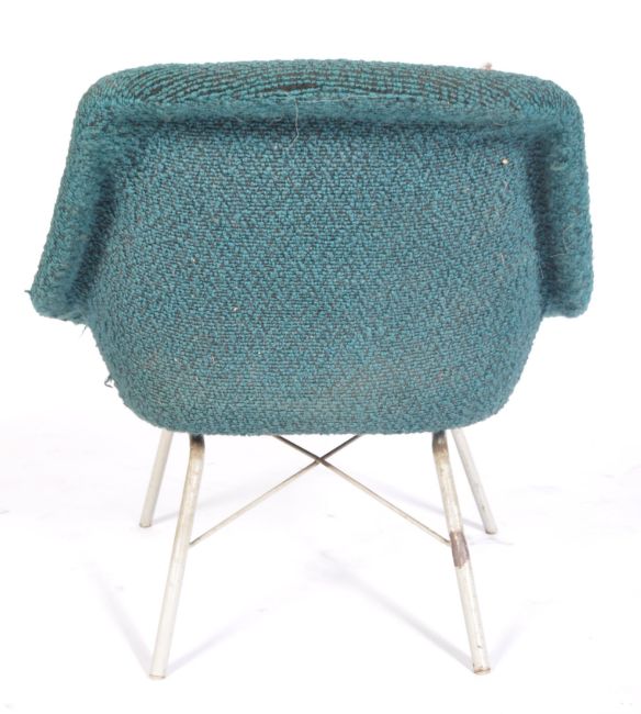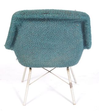A believed Walter S Chenery - Lurashell - A 1970's retro vintage easy / lounge chair / armchair in a bobbly woollen teal upholstery raised on metal Eiffel style legs. Measures 64cm x 66cm x 66cm.