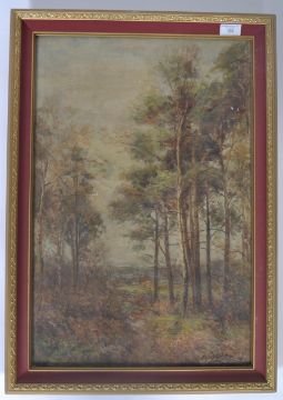 Henry Rollett (1800-) England. An oil on canvas painting of an English forest and countryside scene being signed to the corner and framed.  Measures 69cms x 48cms