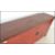 A Chinese 19th / 20th century large red lacquer sideboard of shaped form. The worn flared top over cupboards depicting mythical scenes of figures and clouds. Measures: 84cm high x 163cm wide x 52cm deep.